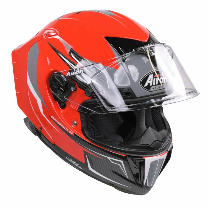 - Visor locking button prevents the visor from accidentally opening, especially at high speed
