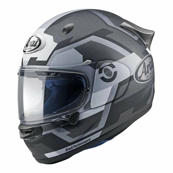 Built with protection in mind the Arai Quantic Face helmet in Grey, is a premium sports-touring helmet. Manufactured by hand, the Quantic is one of Arai’s more comfortable, quietest and safest helmets. Showcased in a cool and understated grey graphic design colouring, the Arai Quantic Face is suitable for all riders.