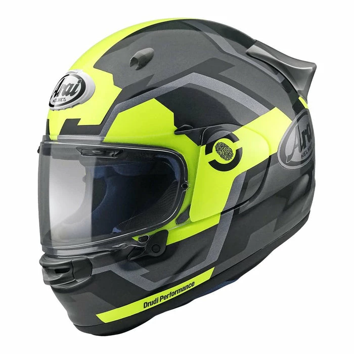Built with protection in mind the Arai Quantic Face helmet in Yello Fluo, is a premium sports touring helmet. Manufactured by hand, the Quantic is one of Arai’s more comfortable, quietest, and safest helmets. In a standout yellow graphic design, this motorcycle helmet is the perfect choice for any rider wanting to add a touch of style to their look.