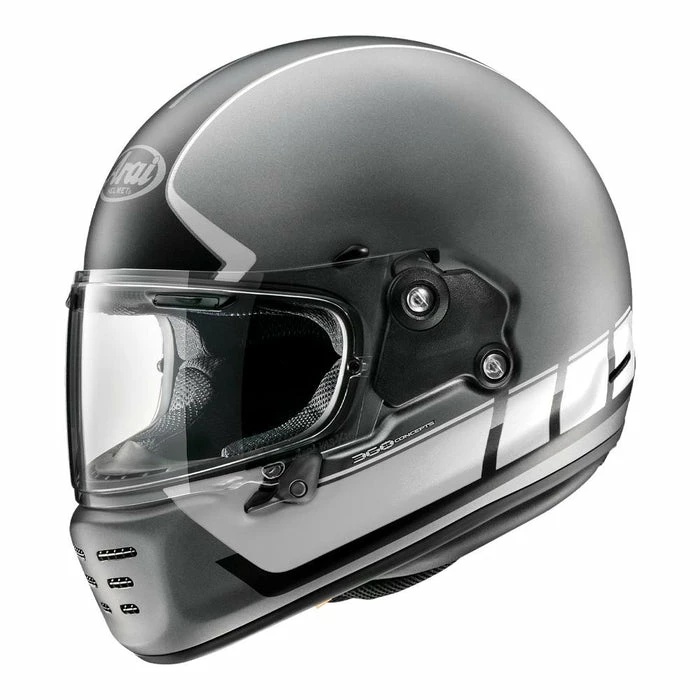 Arai have channeled the 80’s and the feeling of feeling free and different. Arai have been inspired by the simple yet aggressive naked motorcycle and streetfighter style. The Rapide has a cool, clean and simple shape which is crafted in extremely strong PB e-cLc. With comfort in mind, the shell is impressively lightweight and literally a weight off your shoulders. Passing Arai’s stringent in-house testing, the Rapide has reinforced proprietary peripheral belts, to glide across surfaces and glance-off obstacles. With multi-stage air channels that run over and around the shell, the Rapide also comes with Arai’s VAS-V Max Vision clear visor combined with a pinlock insert to ensure you have a clear vision for the road ahead. The VAS-VC shield system, with its retro mechanical look, offers further enhancement by increasing the glace off performance by lowering the visor pivot point and maximising a smooth upper shell.