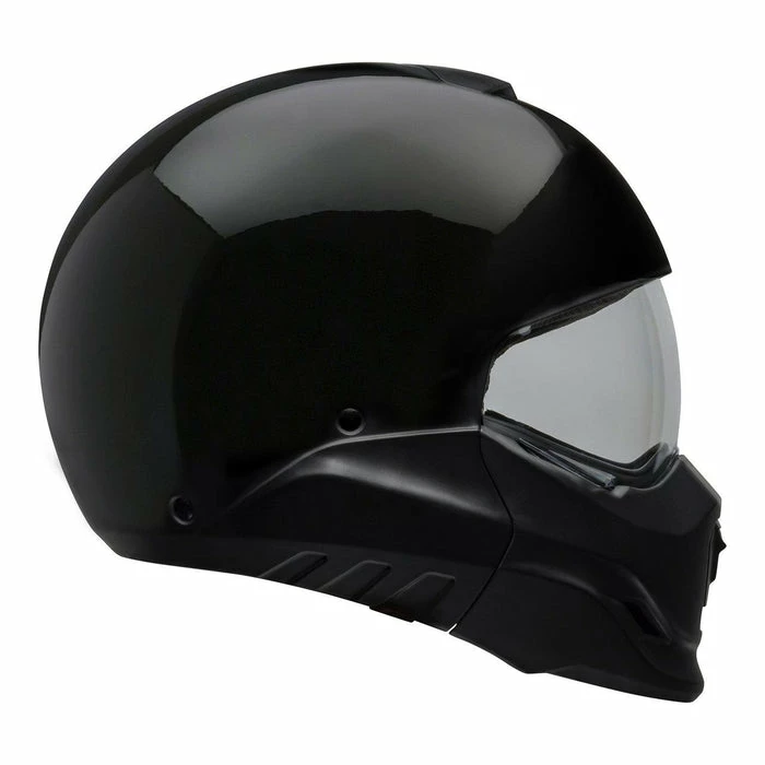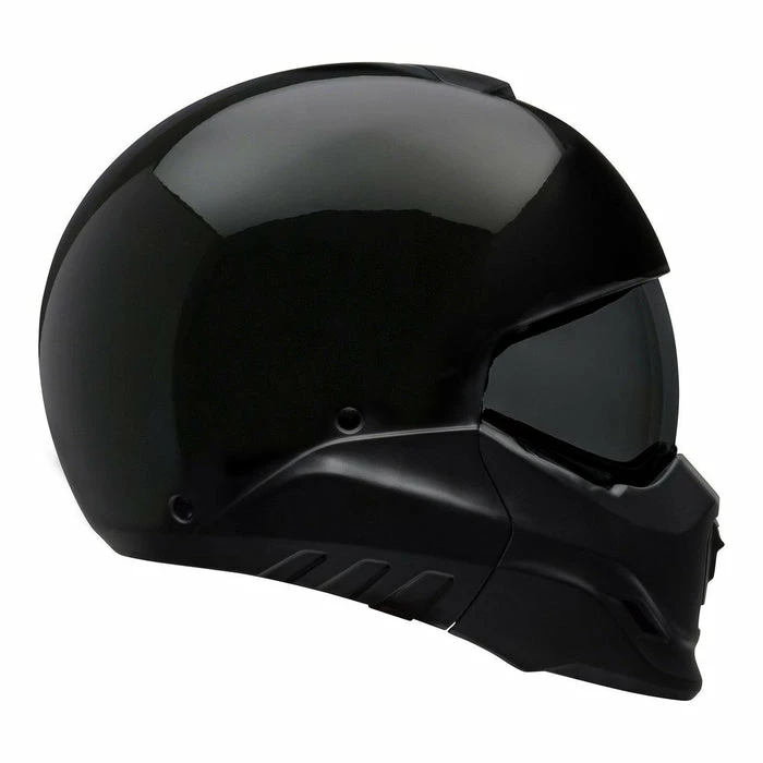 The Bell Broozer is a full-face, open-face helmet with a combination of attitude, style and functionality. The Broozer has a removable chin bar, which means with two levers, this helmet is capable of going from a full face to an open face in a matter of seconds. With an integrated drop-down shield, which features NutraFog II anti-fog, anti-scratch, and UV protection, the Broozer provides Bell’s legendary fit and protection. Dual-certified for both full-face and open-face riding, the Broozer Cranium is a brutal-looking helmet at a versatile price from a reputable brand. That’s a win-win in our eyes.