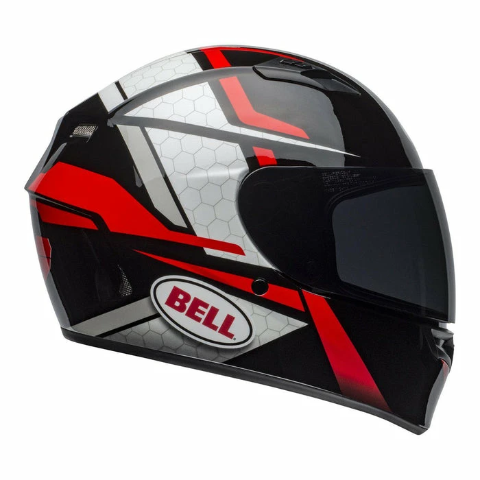 The Bell Qualifier Flare Full Face Helmet offers high performance for the daily rider. Loaded with features from the flagship Star line, the Qualifier offers amazing performance at incredible value for money. Designed for comfort and fit, the Qualifier brings the heat with a cool and unique print, in a mixture of reds, black and grey, all in a high gloss finish, which will set off any look. The clear visor is anti-fog, anti-scratch and NutraFog II so you can have an excellent view of the road ahead of you. Designed to keep you cool with the Velcocity Flow ventilation, the Qualifier has a removable and washable liner with quick-drying materials. Available in 3 shell sizes this motorcycle helmet has an integrated speaker pocket and padded wind collar, which dramatically reduces wind and road noise.