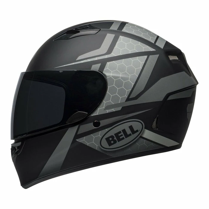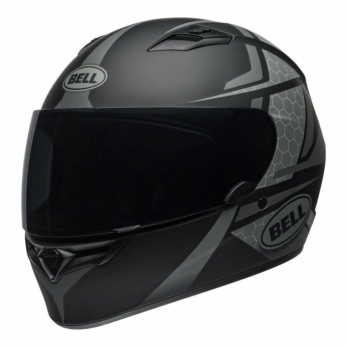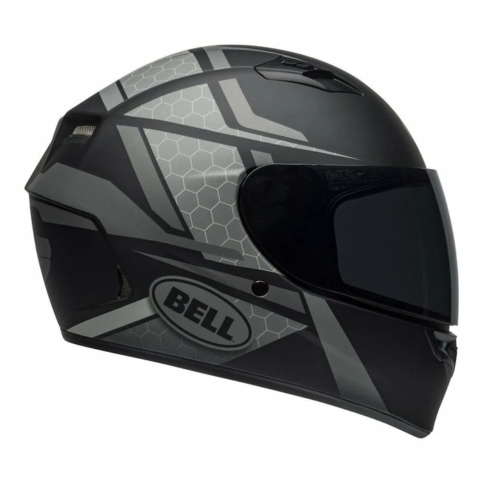The Bell Qualifier Flare Full Face Helmet offers high performance for the daily rider. Loaded with features from the flagship Star line, the Qualifier offers amazing performance at incredible value for money. Designed for comfort and fit, the Qualifier Flare has a super cool print in a mixture of matt black, grey which will set off any look. The clear visor is anti-fog, anti-scratch and NutraFog II so you can have an excellent view of the road ahead of you. Designed to keep you cool with the Velcocity Flow ventilation, the Qualifier has a removable and washable liner with quick-drying materials. Available in 3 shell sizes this motorcycle helmet has an integrated speaker pocket and padded wind collar, which dramatically reduces wind and road noise.