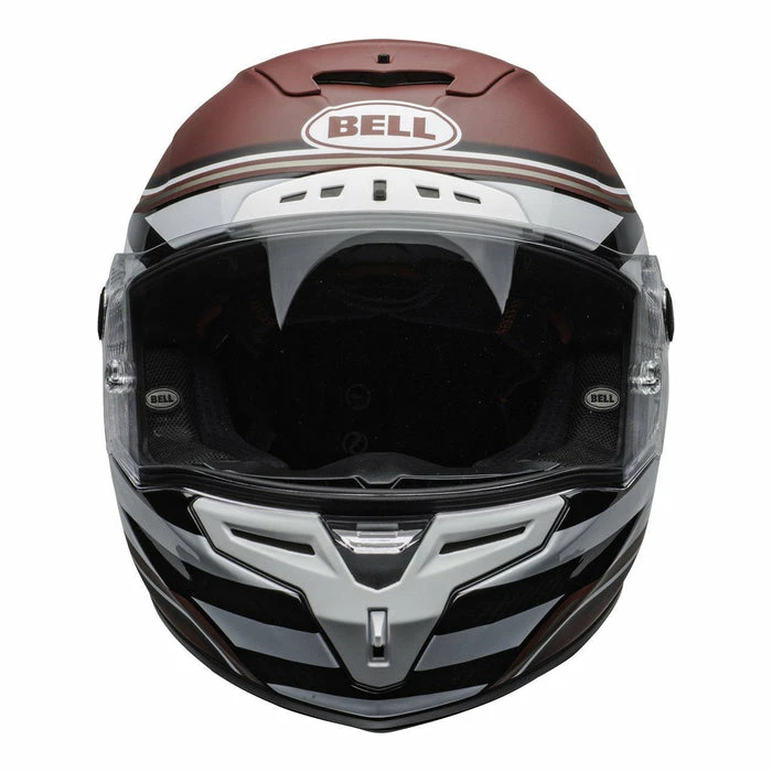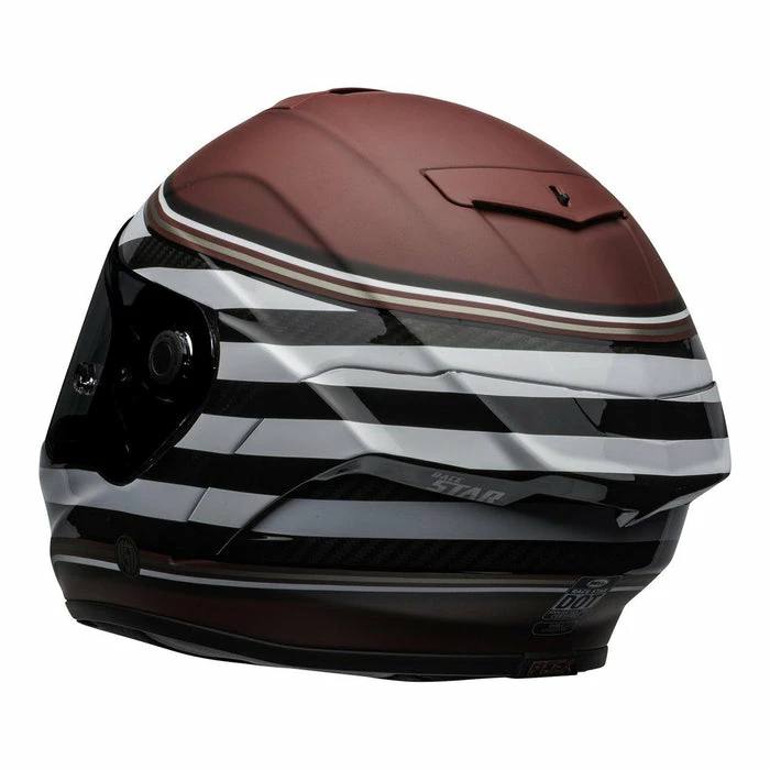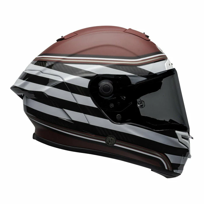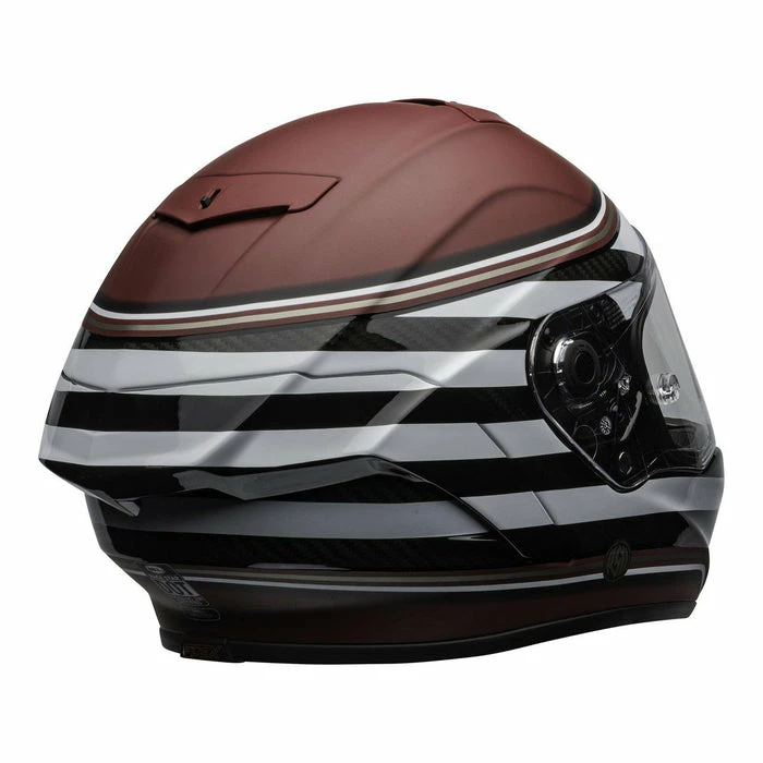The Bell Race Star DLX RSD The Zone full-face helmet is built for racers. With a 10% lighter fit, the Race Star DLX is perfect for the racer with a day job! Design with all the features and protection as other Bell helmets, the Race Star is made from a 3K carbon fiber shell to make sure you are kept safe when on the road or track. With Cutting-edge technology to deliver the best performance, the Flex liner provides further protection combined with the Magnefusion cheek pads for maxim comfort and optimal fit. The RaceView visor provides you with the perfect view of the road or finish line. A Panovision Pinlock Clear visor is installed as standard but an additional Panovision Dark Smoke Pinlock with Tear-Off Posts visor is also included. Available in 5 shell sizes, for the perfect fit, the Race Star DLX delivers exceptional detail in a cool and unique white, candy red finish.