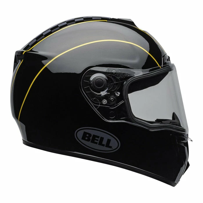 Head out onto the open road or down to the racing track with the Bell SRT Buster Full Face motorcycle helmet in black, yellow and gray. Designed specifically for style, comfort and protection the SRT is putting the ‘sport’ back into ‘sport touring’. Featuring an industry-leading fibreglass composite shell, that is lightweight and constructed with Velocity Flow Ventilation system with FlowAdjust, which makes sure you are kept cool when hitting the open road. With a panovision shield with class 1 optics, recessed EPS speaker pockets and a wide range of size options, the SRT offers all the necessary protection for when you want to take on the road ahead. Offering the expert fit and protection Bell has to offer, The Bell Street IOM TT motorcycle helmet delivers exception details in a stand-out design.