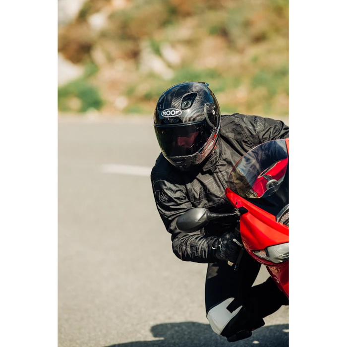 At just 1090g, the RO200 Carbon is the most lightweight full face racing helmet on the market! The visor offers a horizontal field of view of 210 degrees and comes with a MaxVision 120 clear Pinlock lens in the box.