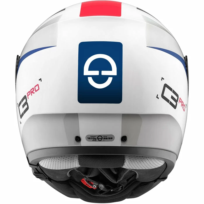 Easy to use thanks to the slide on the base of the helmet Can be lowered even further than its predecessor, the C3 - Weight 1570g including sun visor, antenna and acoustic collar