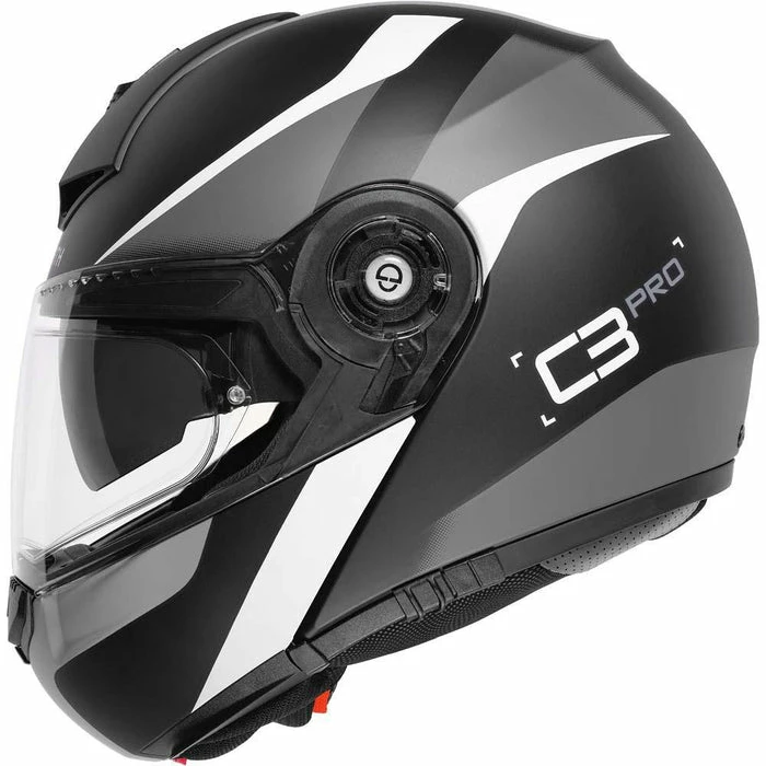 Extremely quiet flip-up helmet thanks to its integrated acoustic collar – 82 dB(A) at 100 km/h on a motorcycle without fairing ‚Äì Even quieter than C3 (84 dB(A)). Safety technology: the helmet’s reduced noise level means that the driver is more concentrated and alert.