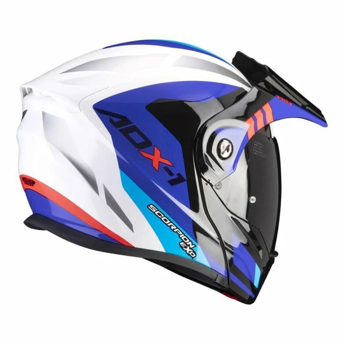The ADX-1 can be used as a full face adventure helmet with the external peak visor attached, or it can be removed to create an aerodynamic touring helmet. The oversized eye port is extremely wide for greater peripheral vision and downward visibility, and the modular chin-bar can be conveniently flipped up, as and when required.