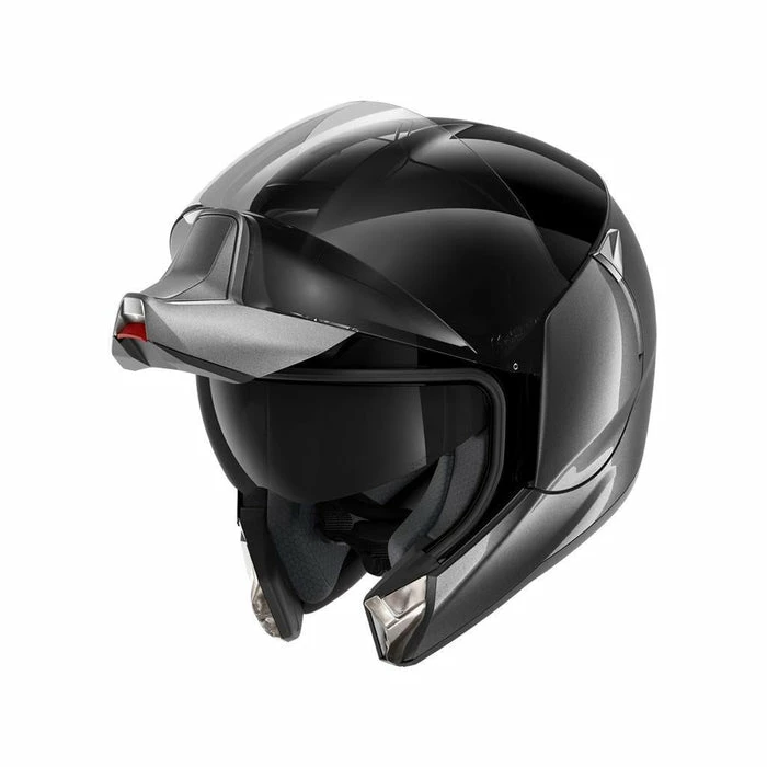 The all-new Shark Evojet’s Dual Flip Up Helmet innovative design integrates the chin bar into the visor of the helmet, allowing you to ride in safety with the helmet in the open or closed position.