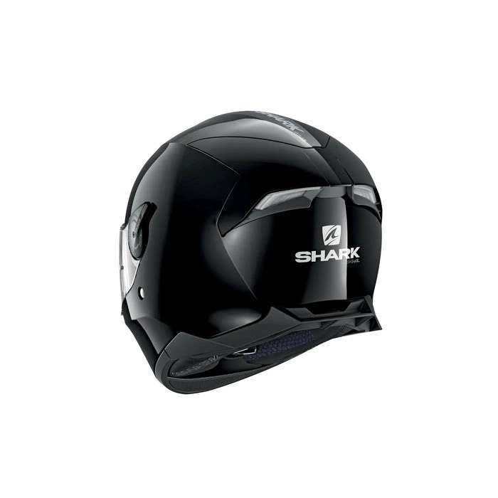 The exterior of the helmet features twin rear spoilers that have been aerodynamically optimised and have integrated air exhausts. The helmet has ‘Shark Skin’ fastenings on the peak to further minimise wind noise