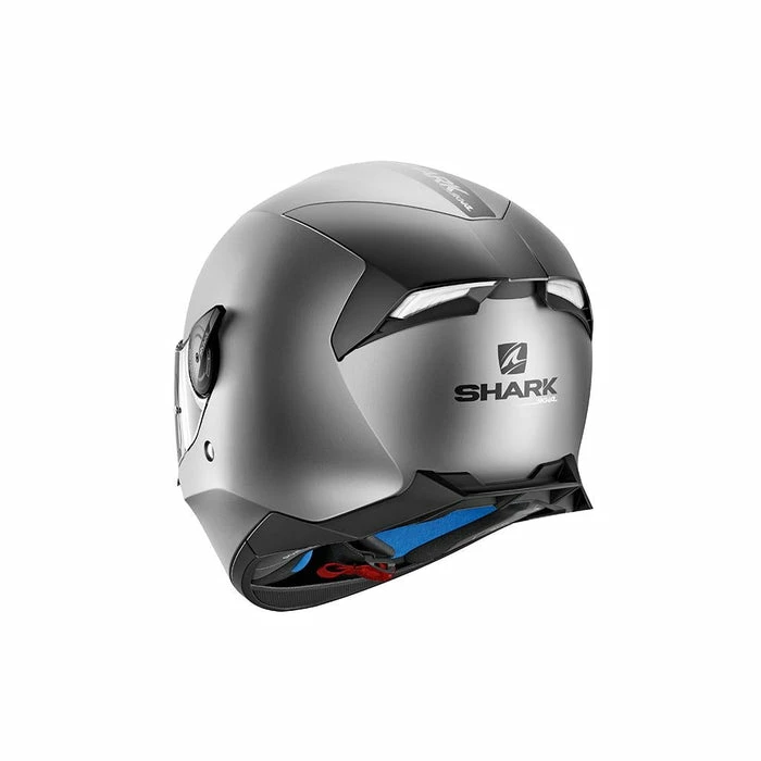 The exterior of the helmet features twin rear spoilers that have been aerodynamically optimised and have integrated air exhausts. The helmet has ‘Shark Skin’ fastenings on the peak to further minimise wind noise