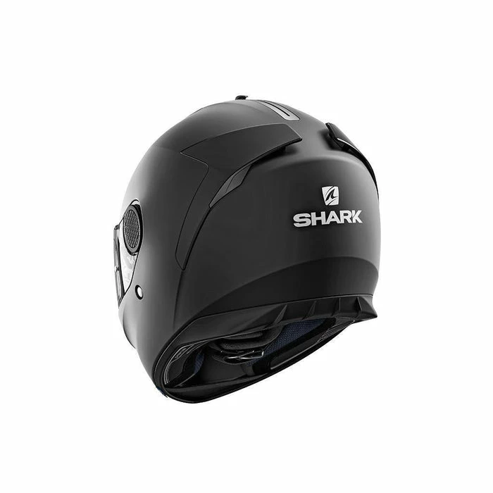 The exterior of the helmet features twin rear spoilers that have been aerodynamically optimised and have integrated air exhausts. The helmet has ‘Shark Skin’ fastenings on the peak to further minimise wind noise
